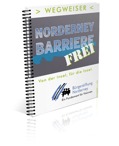 Die Bürgerstiftung Norderney hat deswegen das Projekt „Norderney barrierefrei“ ins Leben gerufen. Mit Unterstützung der Stadt Norderney und der Kurverwaltung wurde der vorliegende Wegweiser erarbeitet. Er soll den Einwohnern sowie den Feriengästen unserer Insel behilflich sein, ihren Alltag frei zu gestalten – von der Wegweisung zu Bademöglichkeiten, Promenaden und kulturellen Ereignissen bis zu Restaurants und Einkaufsmöglichkeiten, von Ämtern und Behörden bis zu medizinischen Einrichtungen, Hilfsdiensten und Apotheken.